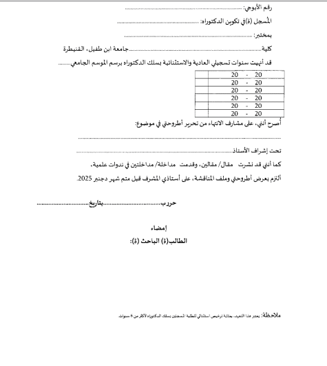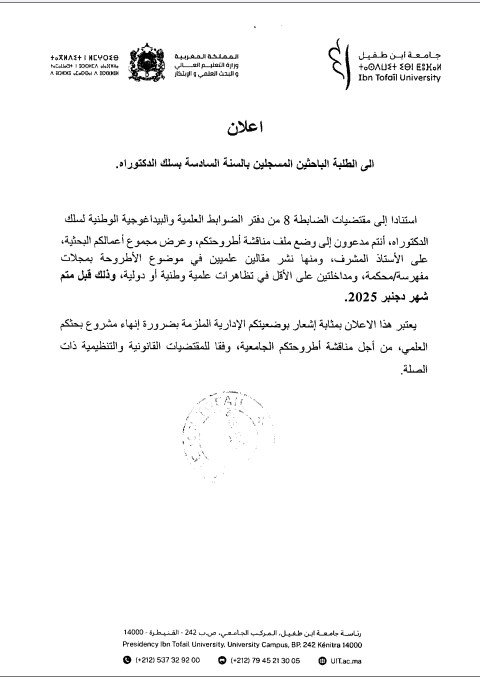 إعلان إلى الطلبة الباحثين المسجلين بالسنة السادسة بسلك الدكتوراهإعلان إلى الطلبة الباحثين المسجلين بالسنة السادسة بسلك الدكتوراه