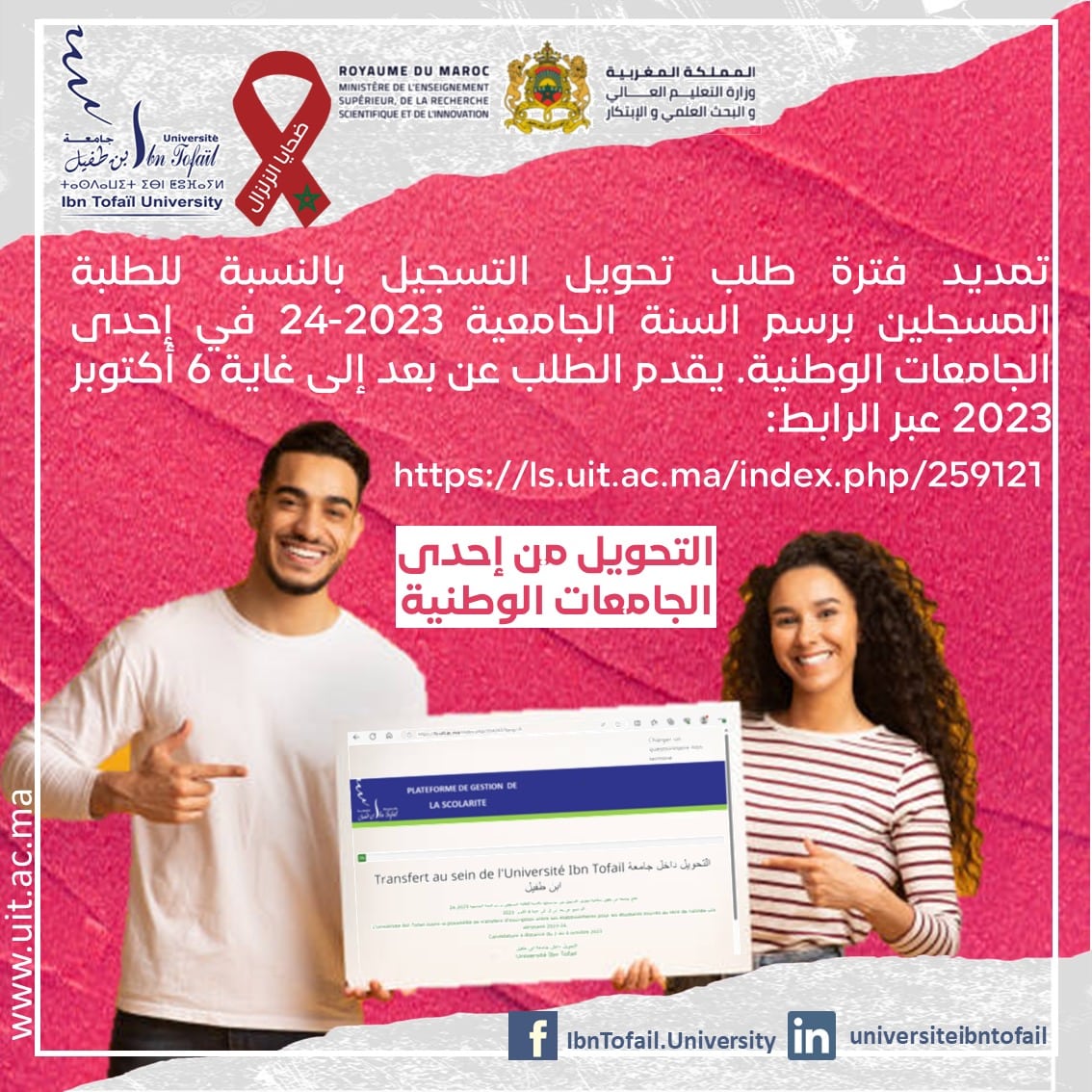 تمديد فترة طلب تحويل التسجيل بالنسبة للطلبة المسجلين برسم السنة الجامعية 2023-2024 في إحدى الجامعات الوطنيةرابط طلب التحويل