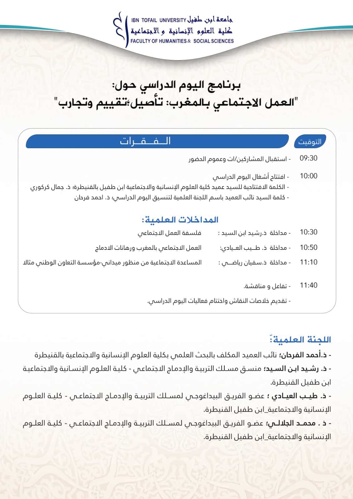 يوم دراسي في موضوع : العمل الإجتماعي بالمغرب : تأصيل، تقييم وتجارب