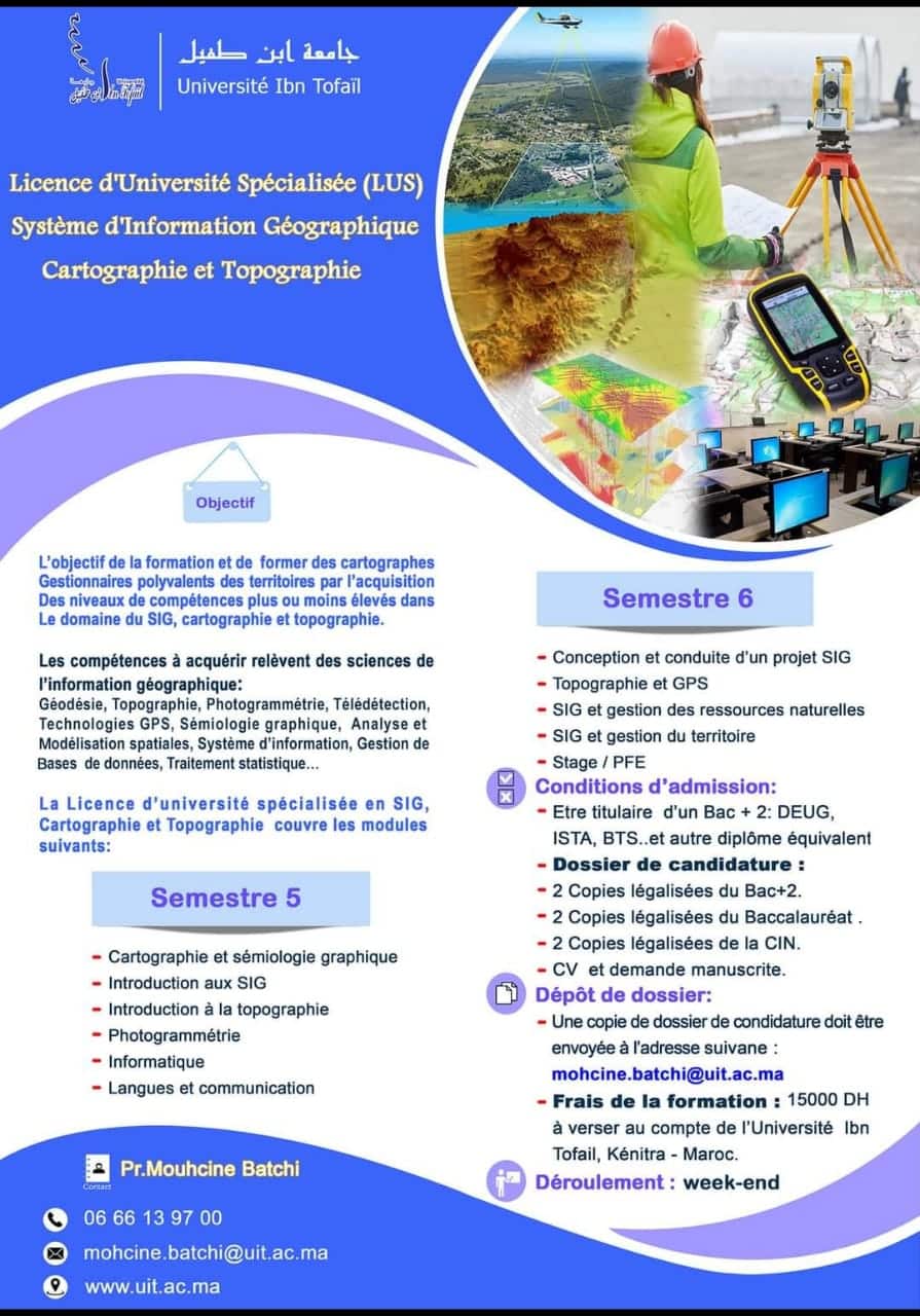 APPEL A CANDIDATURE ( LUS «Système d’Information Géographique, Cartographie et Topographie» )Lien d’inscription