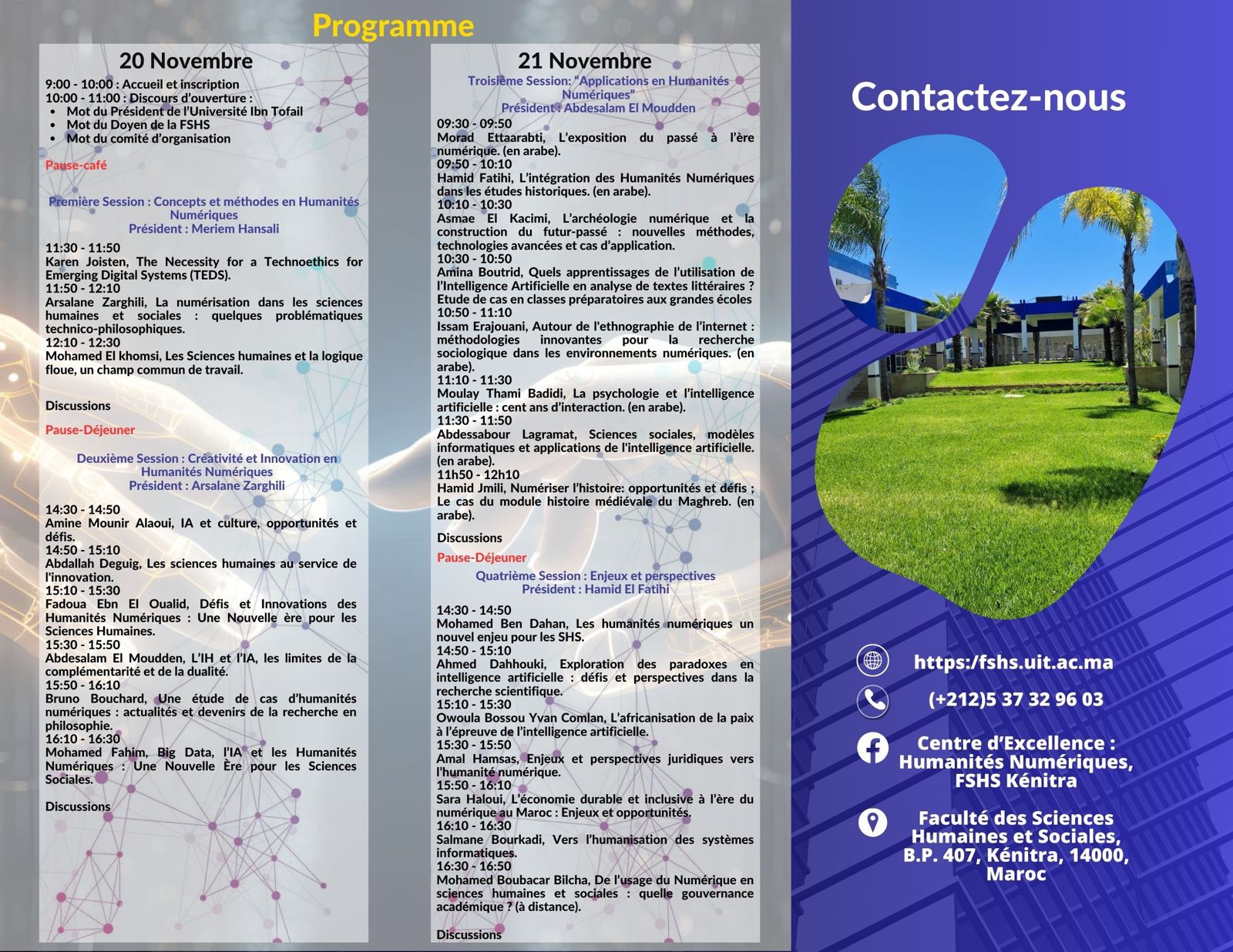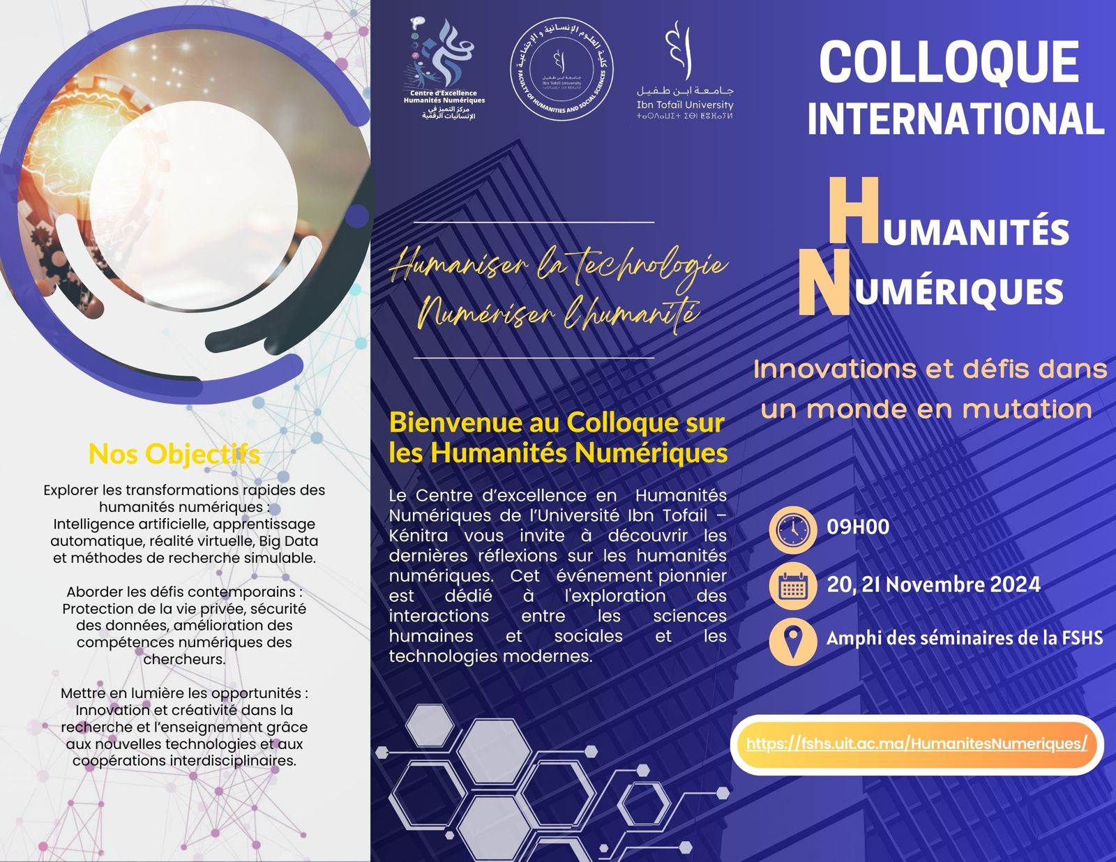يسر مركز التميز في الإنسانيات الرقمية بكلية العلوم الإنسانية والاجتماعية بجامعة ابن طفيل – القنيطرة أن يدعوكم لحضور الندوة الدولية حول الإنسانيات الرقمية: الابتكارات والتحديات في عالم متغير.