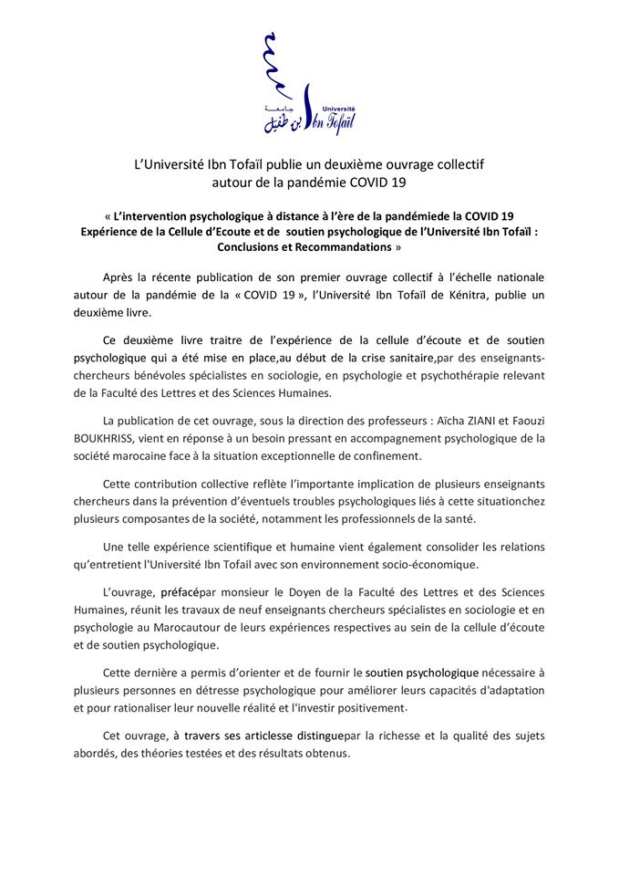 L’Université Ibn Tofaïl publie un deuxième ouvrage autour de la pandémie de la COVID19